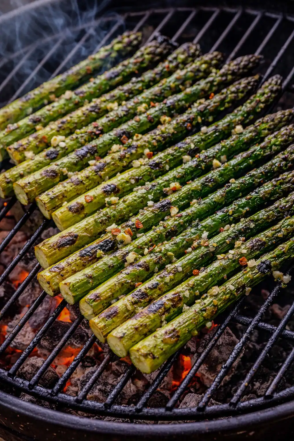 Place directly on the grill grates. Cook for 5-8 minutes, turning occasionally, until tender with light char marks. For the ideal finish, grilling asparagus with olive oil and garlic creates the best charred flavor.