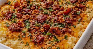 Golden Baked Cheddar Mashed Potatoes